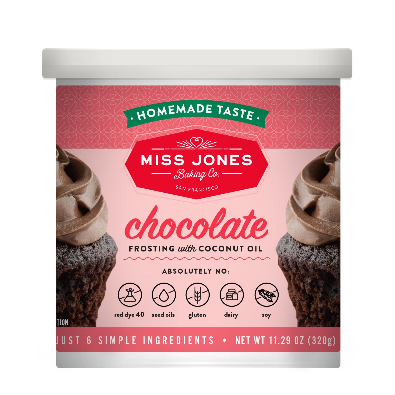Miss Jones Natural Chocolate Frosting is a chocolate dream come true! Imagine the rich, velvety taste of homemade frosting, but ready to enjoy straight from the jar. This smooth, decadent delight is crafted with 6 wholesome ingredients and a touch of coconut oil magic for an indulgence that's pure chocolate heaven. With less sugar and zero artificial additives, you get a perfect balance of sweetness and chocolate goodness. Wave goodbye to red dye 40, seed oils, gluten, dairy, and soy. Let your baking adventures soar with our luscious, velvety chocolate frosting.